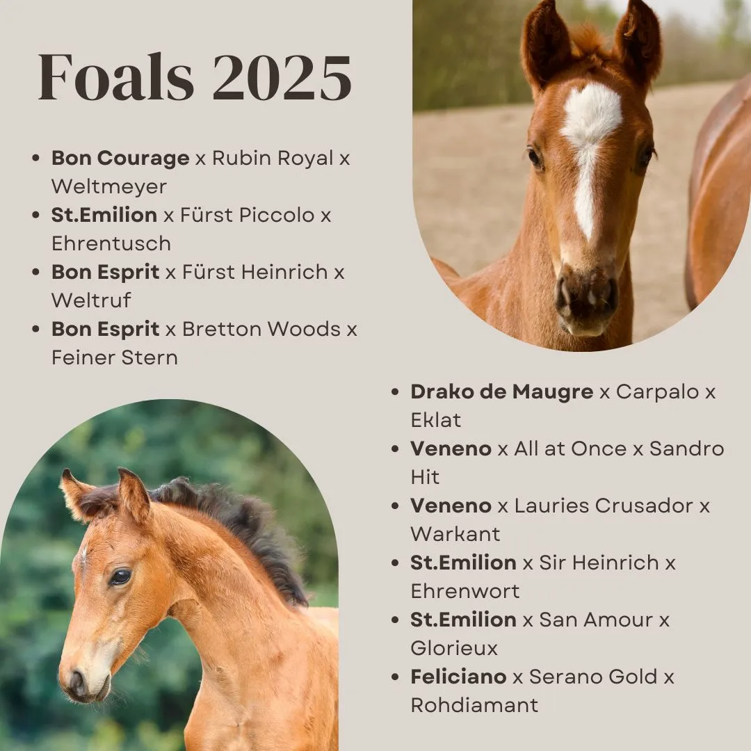 A foal by the Ib-Main Premium winner St. Emilion, Vice-Landeschampion, and top foal producer, out of a State Premium mare who qualified for the Bundeschampionat 2022 and descends from the famous „Waldhexe“ damline.